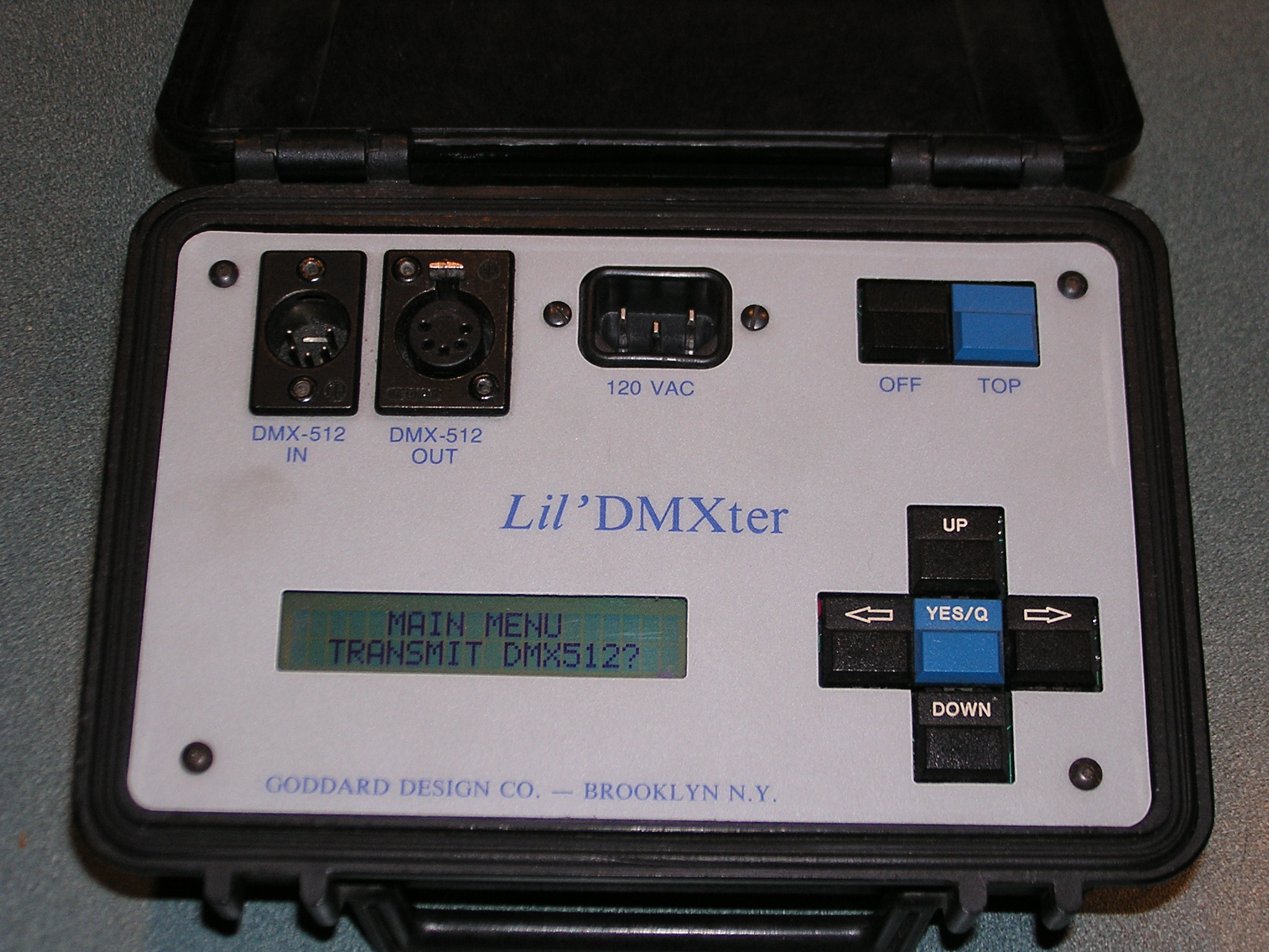 Way back in 1990, Bob Goddard of Goddard Design Co and I started on building a DMX512 test set which I named the Lil’ DMXter. Bob and I had been talking about building something like this since 1986 when we worked together on parts of the control equipment for the lighting system that was going into the Apollo Theater renovation in Harlem, NY. DMX512 had been recently created as a standard by engineers in the entertainment lighting industry, but there wasn’t an effective way to troubleshoot these new control systems. I had run up against this very issue while working at the Palladium night club in NYC (1985-90), where there was a large pre-DMX512 digital dimmer installation with no effective way to troubleshoot the digital side of the control system.